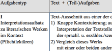 Im Interpretationsaufsatz beim Deutschabitur ist eine allgemeine Einleitung zum Werk üblich. Diese Einleitung bereitet man am besten zu Hause vor. Sie finden hier ein Arbeitsblatt, mit dem entsprechende Info- oder Textbausteine für die Einleitung zum Interpretationsaufsatz vorstrukturiert werden; außerdem Tabellen für die Umsetzung der Einleitungen zu "Dantons Tod", "Homo Faber", "Agnes" und erste Informationen zu "Die Räuber", "Der Proceß", "Michael Kohlhaas" und "Der Besuch der alten Dame".