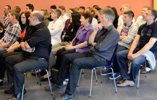 Vor allem bei Elternabend droht das frontale Brett: Lehrer/innen stehen vorne und dozieren 90 Minuten lang, was auf den Folien steht (wir müssen auf Pünktlichkeit achten, die Klasse ist undiszipliniert, warum sind immer noch nicht alle Bücher eingebunden ... usw. usf.).