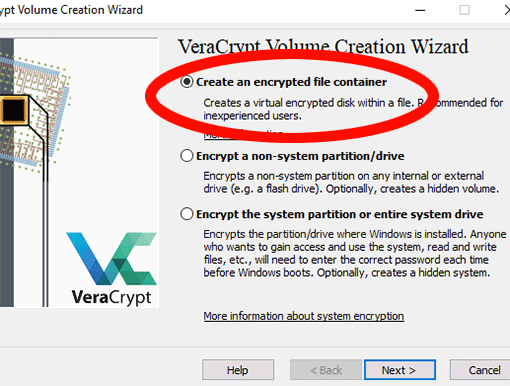 Im folgenden Dialog wählen Sie »Create an encrypted file container«: