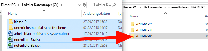 Deshalb gilt: Machen Sie regelmäßig Backups! Die sicherste Möglichkeit besteht darin, zuhause alle Dateien des Containers auf Ihre Festplatte zu kopieren, am besten mit Datumsangabe.