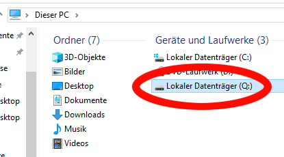 Nun wird Ihnen ein neues »Laufwerk« angezeigt - der Container hat sich als neues Medium geöffnet (als hätte er sich in eine externe Festplatte verwandelt), und zwar mit dem gewählten Laufwerksbuchstaben. Unter Windows lautet die Bezeichnung »Lokaler Datenträger«, unter macOS lapidar »Untitled«