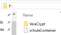 Hinweis: »Hidden VeraCrypt Volume« ist eine praktische Möglichkeit, einen zweiten Container im ersten zu erzeugen. Wenn Sie bspw. private Daten wie Arztrechnungen ebenfalls auf Ihrem Stick herumtragen wollen, dann erzeugen Sie ein verstecktes Volume im sichtbaren. Die beiden Volumes haben unterschiedliche Passwörter, je nach dem welches Passwort Sie eingeben, wird der entsprechende Container geöffnet. Wenn Sie den Container also mit dem Schule-Passwort öffnen, sieht niemand, dass dort auch private Dateien liegen. Wenn Sie den Container mit dem Hidden-Passwort öffnen, werden nur die privaten Dateien angezeigt.