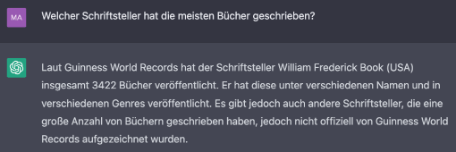 Fragen wir ChatGPT mal, welcher Autor die meisten Bücher geschrieben hat.