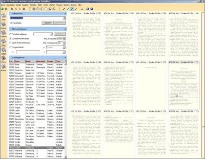 - Verschiedene Ansichtsoptionen sind möglich (nur Volltext auf einer/zwei/mehreren Seiten, geteilte Ansicht Inhalt/Text usw.).