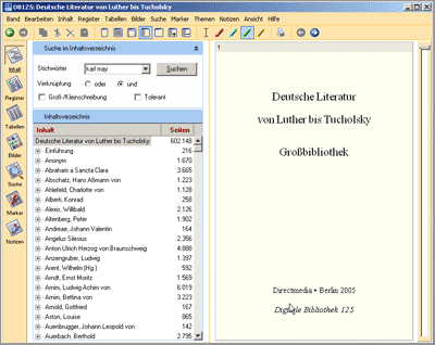 Die CDs/DVDs der Digitalen Bibliothek sind für ihre Materialfülle bekannt. Die DVD-ROM “Deutsche Literatur von Luther bis Tucholsky” hat einen neuen Rekord aufgestellt: 600.000 Seiten Literatur - das entspricht 70 Regalmetern. Vertreten sind alle Autoren und Werke bis zur Weimarer Republik, von denen man jemals gehört hat.