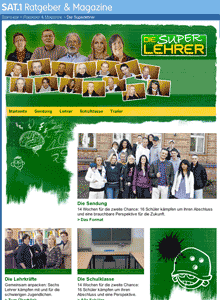 Neue Sat1-Doku-Soap "Die Superlehrer": Die Superlehrer (die gar keine echten Lehrer sind) sollen gemeinsam mit 16 chronischen Schulabbrecher/innen um den nachzumachenden Hauptschulabschluss "kämpfen". Entgegen aller Erwartung sind die Zöglinge jedoch supermotiviert, superkooperationsbereit und supereinsichtig - wahre Superlehrerfreunde eben.