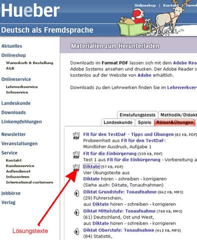 Auf der Seite finden sich insgesamt fünf Diktate im mp3-Format zum Anhören (unterschiedliche Schwierigkeitsstufen). In einer PDF-Datei sind die Lösungen abrufbar.