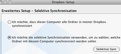 Bei der Installation von Dropbox wird ein Ordner angegeben, der synchronisiert wird. Das ist nicht besonders praktisch, wenn man die zu synchronisierenden Dateien auf mehrere Verzeichnisse verteilt hat. Ebenfalls sehr unpraktisch ist diese Einschränkung, wenn man bspw. in seinem Verzeichnis "schule" alle Dateien synchronisieren möchte bis auf den Ordner "videos", weil der zu groß ist. Zwar können beim Setup mit der Option "Selektive Synchronisation" einzelne Unterverzeichnisse aus- oder abgewählt werden; insgesamt ist dieses Vorgehen jedoch recht unelegant.