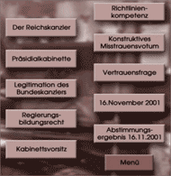 Hauptmenü der DVD 'Der Bundeskanzler' Die DVD "Der Bundeskanzler" besteht aus fünf kurzen Filmen, jeweils in didaktisch sinnvoller Länge von 2-6 Minuten. Es sind:
