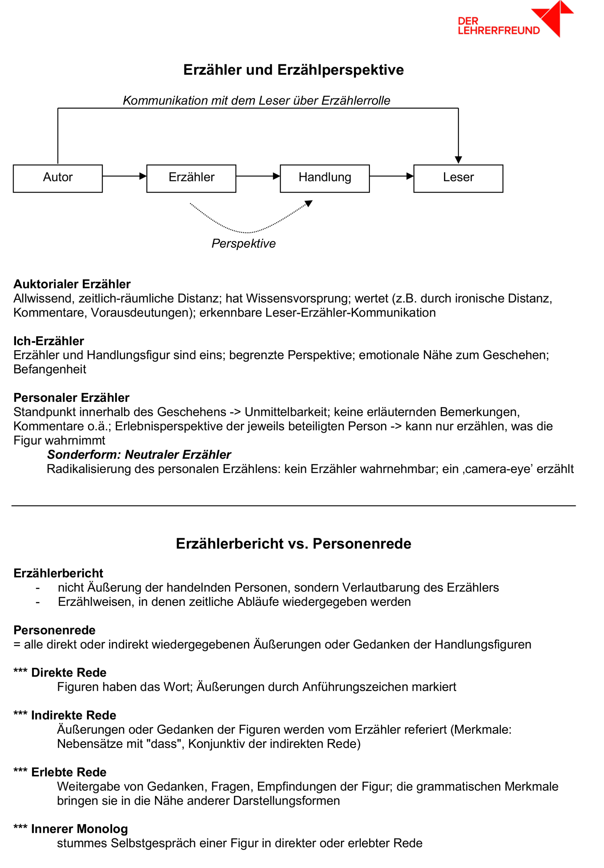 Erzähler, Erzählperspektive, Erzählerbericht, Personenrede - Arbeitsblatt 20.06.2024, 17:55