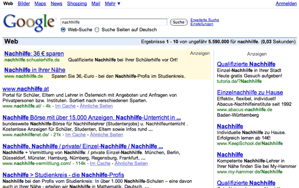 Google-Suche, Stichwort 'Nachhilfe' (Vorschau - Klick aufs Bild zum Vergroessern