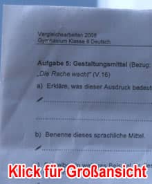 Ausschnitt: Foto der Vergleichsarbeit Deutsch, aufgenommen zwei Tage vor dem (geplatzten) Termin