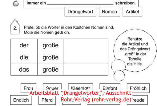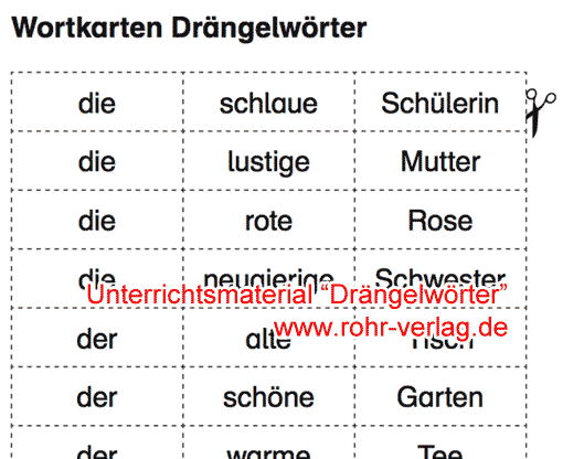 Arbeitsblatt Drängelwörter - Ausschnitt