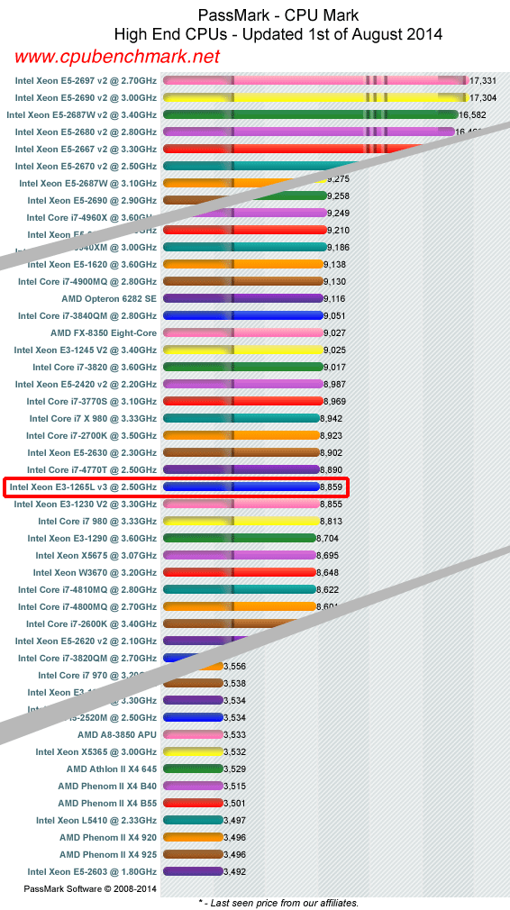 Nach fünf Jahren wird es Zeit für etwas mehr Dampf. Diesmal ist es wieder bei Ingate ein Dell R210 II mit Intel Xeon E3-1265Lv3 2,50 GHz (bei cpubenchmark.net, Screenshot), 16 GB DDR3 ECC RAM, 2x120 GB SSD