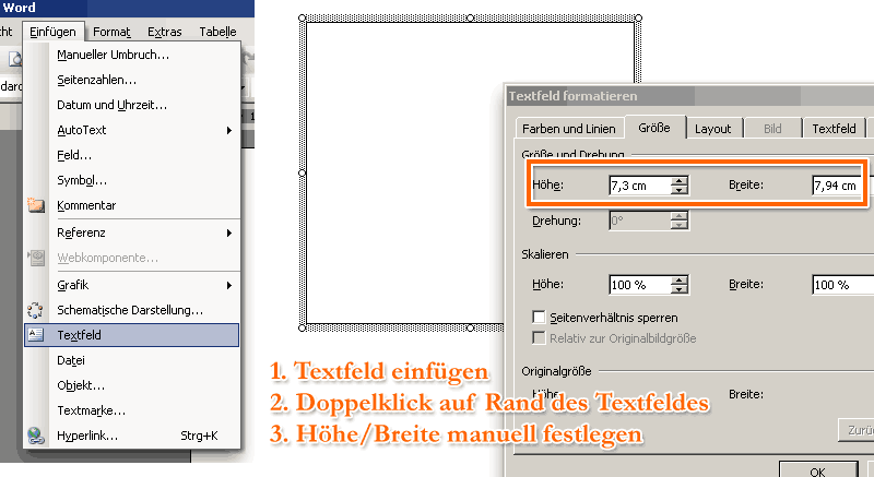 1. Wenn Sie einigermaßen zügig auf der Tastatur unterwegs sind: Tippen Sie Ihre Kommentare. Tippen Sie die Kommentare in ein Textfeld, dem Sie zuvor die entsprechende Größe zugewiesen haben (Screenshot, wie das geht (alte Office-Version)). Drucken Sie am Ende des Korrekturvorgangs alle Kommentare aus, schneiden Sie sie aus und kleben Sie sie auf die entsprechenden Bögen auf. Das geht insgesamt schneller und ist mit weniger Stress verbunden.