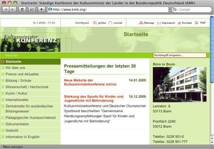 reticon 12.01.2009: Endlich: Kultusministerkonferenz mit neuem Webauftritt