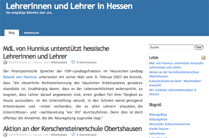 Blog: Lehrerarbeitszimmerdebatte in Hessen 13.02.2007, 14:55