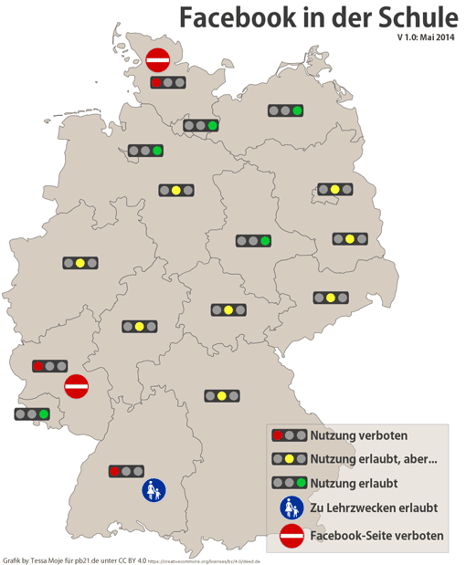Wer sich dabei die Frage stellt, was erlaubt ist und was nicht: ein gut recherchierter Übersichtsartikel bei #PB21 über die Legalität von Facebook in Schüler-Lehrer-Beziehungen in den einzelnen Bundesländern, als Substrat diese Karte: