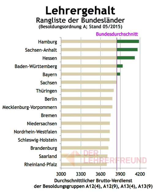 1. Lehrergehälter in Deutschland: Bundesländer-Rangliste 2015