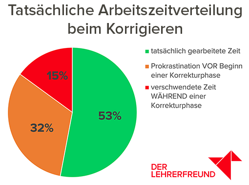 Das Schlimmste aber sind prokrastinative Tätigkeiten, die wir unbewusst dem Korrekturvorgang zurechnen. Dann denken wir, wir hätten bereits zwei Stunden korrigiert, in Wirklichkeit waren es aber nur 50 Minuten.
