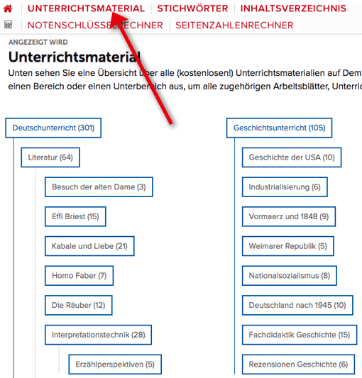 Für eine schnelle Orientierung in den Unterrichtsmaterialien empfiehlt sich auch ein Blick in den Bereich Unterrichtsmaterial: