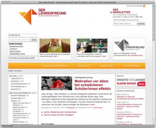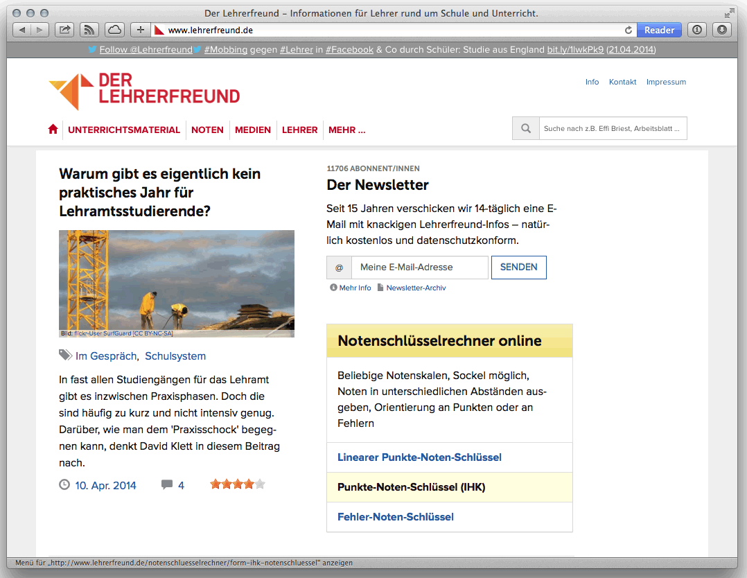 Screenshot Lehrerfreund, Startseite, 04/2014