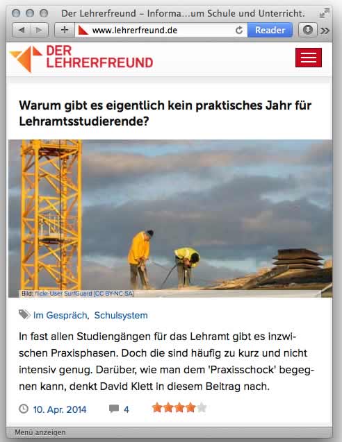 Screenshot Lehrerfreund, Mobilauflösung, 04/2014