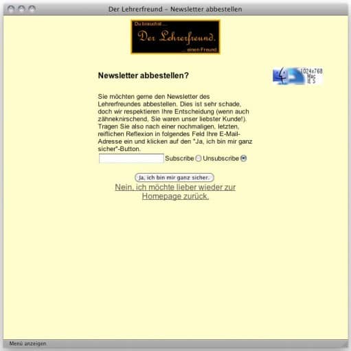 Der Lehrerfreund-Newsletter gehörte von Anfang an zum Kernbereich Des Lehrerfreunds. Entsprechend ausführlich wurde Menschen, die sich abmelden wollten, ins Gewissen geredet: