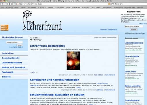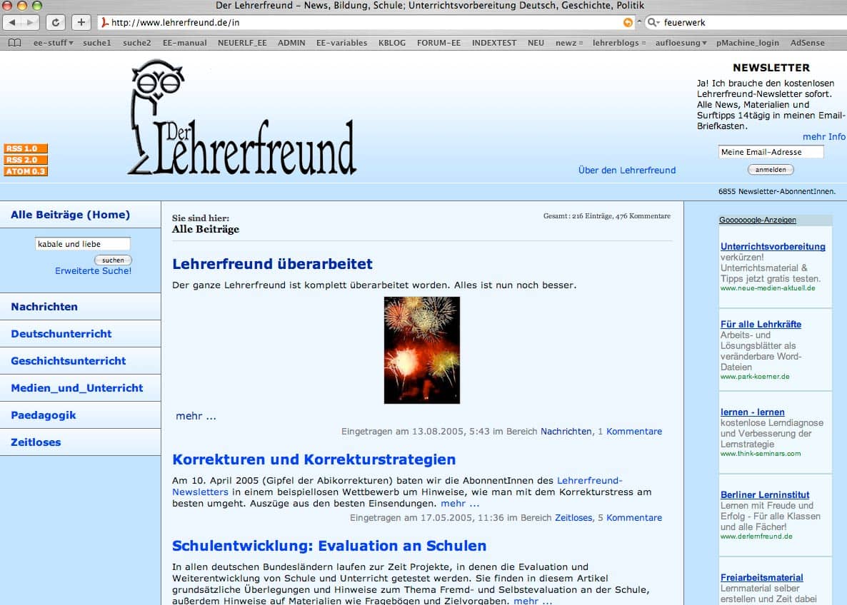 Am 13.08.2005 um 5.43 morgens erblickte der sechste Lehrerfreund das Licht der Welt. Unter der Haube steckte nun das CMS ExpressionEngine in der Version 1.3.1.