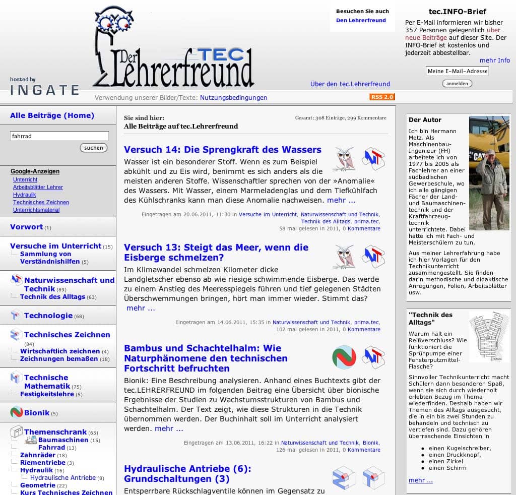 Am 6. Mai 2008 ging der tec.Lehrerfreund mit dem ersten Beitrag Vorsatzzeichen in der Mathematik an den Start. Der tec.Lehrerfreund bedient mit Unterrichtsvorschlägen, Hintergrundinformationen und Arbeitsblättern für den Technikunterricht an Berufsschulen und allgemeinbildenden Schulen.