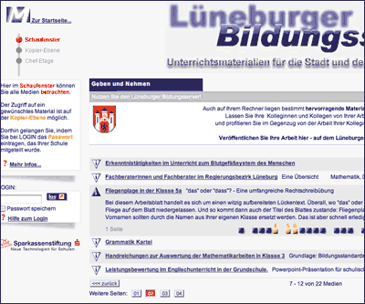 Ein “Kaufhaus für Lehrer im Internet” sei es, verkündet Stefan Spohn vom Kreismedienzentrum Lüneburg. Hineingehen und in der wunderbaren Welt der Unterrichtsmaterialien wühlen. Allerdings seien die Regale noch etwas leer.