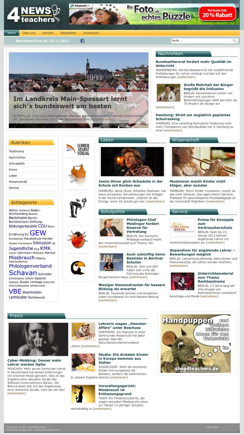 Screenshot: Website News4teachers, 22.11.2011 (Vorschaubild)