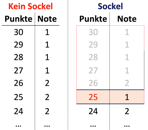 Weiche Sockel verschieben den ganzen Notenschlüssel um die Sockelpunktzahl. Dabei kommt es oft zu unerwünschten Nebeneffekten.