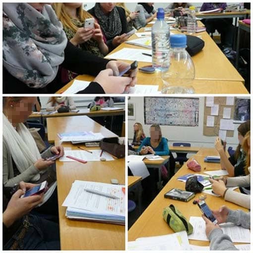 Auf die Frage, was die Schüler/innen mit ihren Smartphones denn gerade machten, kamen diese Antworten: