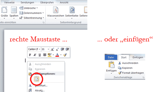 Verwenden Sie dazu Strg + V, rechte Maustaste -> "einfügen" o.ä.