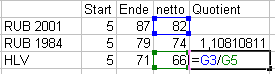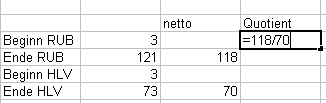 ... drücken Sie nach Eintippen der Formel die Eingabetaste, und der Quotient sollte errechnet sein: