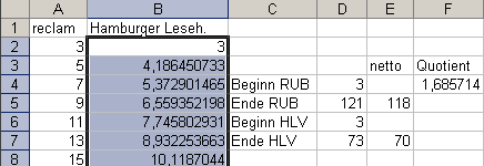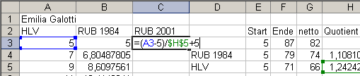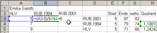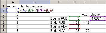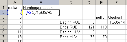 5. Geben Sie in die erste freie Zelle der zweiten Lektüreausgabe die Formel ein, die da lautet: