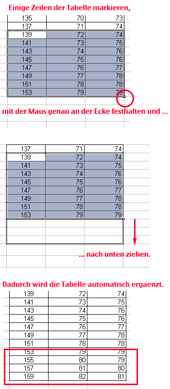Ja, das ist für längere Romane nicht so günstig. Wie Sie die Tabelle einfach erweitern können, erfahren Sie entweder im Beitrag Noten ausrechnen mit Excel unter Schritt 3 (“autoausfüllen”) oder direkt hier: