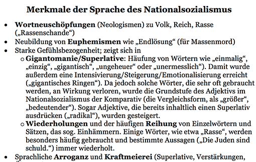 Diese Inhalte finden Sie auch in der pdf-Datei Übersicht: Merkmale der Sprache des Nationalsozialismus (pdf)