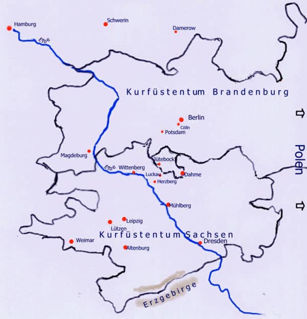 Weiter können auf der Karte Symbole oder Punkte eingefügt, beschriftet und bei Bedarf mit Linien verbunden werden. Auch eigene Icons können hochgeladen und eingefügt werden. Ein schönes Beispiel sind die Stationen von Goethes Italienreise, gefunden von Hokey; dort wird in den Kommentaren auch der Hinweis gegeben, dass sich eine ähnliche Karte im Deutschunterricht auch zur Veranschaulichung der Stationen des “Michael Kohlhaas” gut eignen würde (mögliche Vorlage: interaktive Karte zu Michael Kohlhaas, Screenshot).