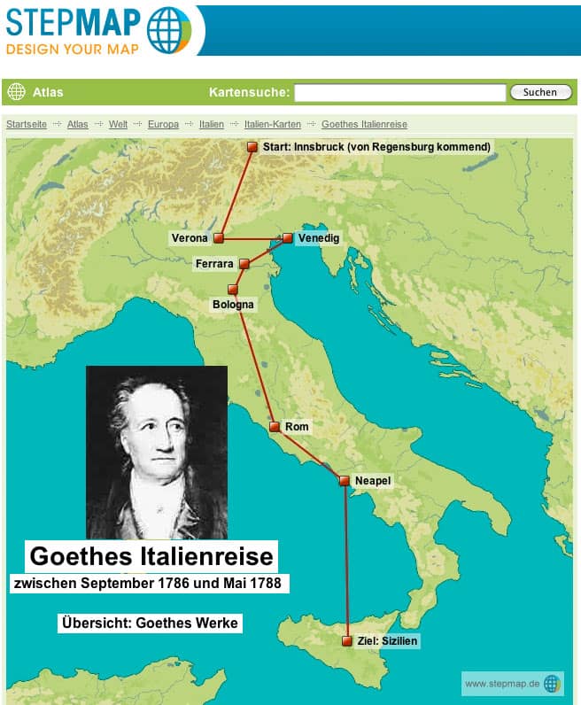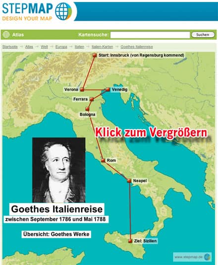 Für den Deutschunterricht findet sich neben der oben erwähnten Karte zu Goethes Italienreise eine Karte zu Deutschland - Ein Wintermärchen (Heinrich Heine) und zu Schiller in Deutschland.