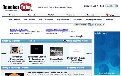 Auf "TeacherTube" können Videos aus dem Schul- und Bildungsbereich veröffentlicht werden. Leider dominiert (noch?) die Sprache Englisch.