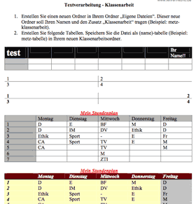 Aufgaben der Klassenarbeit: Textverarbeitung (Tabellen)