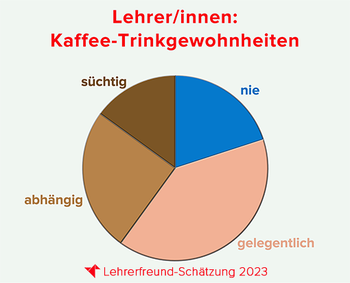 Interessant wäre auch ein Vergleich des Kaffekonsums zu anderen “Gruppen” wie Beamte oder Angestellte. Obwohl ich vermuten würde, dass unter den Lehrern ein vergleichsweise hoher Anteil an “Abhängigen” und “Süchtigen” zu finden ist.