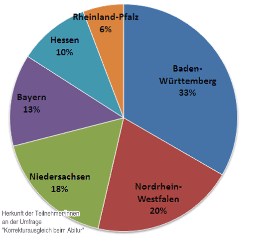 Die Umfrage war ab Ostermontag 2013 vier Tage lang geöffnet (01.04.-05.04.2013). Insgesamt wurden 75 Antworten abgegeben; eine Antwort kam aus Österreich (kein Korrekturausgleich), die restlichen aus Deutschland. In Österreich und der Deutschschweiz spricht man statt Abitur von Matura.