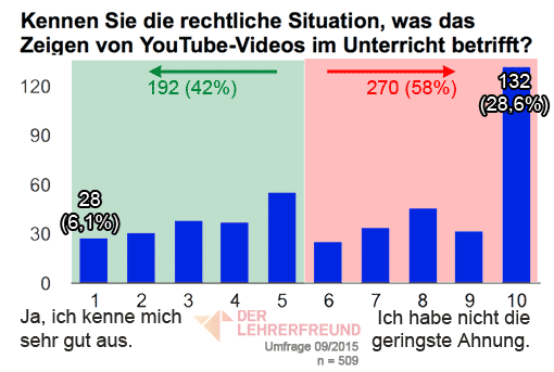Fast jede/r dritte Lehrer/in hat "nicht die geringste Ahnung" von der rechtlichen Lage, was YouTube-Nutzung in der Schule betrifft