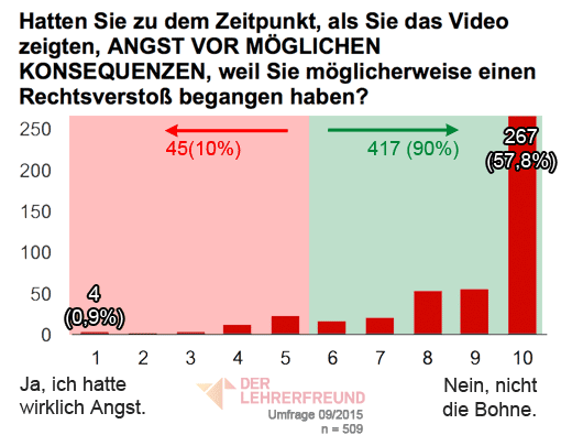 Diagramm: Angstgefühle vor Strafverfolgung bei Lehrer/innen, die YouTube-Filme im Unterricht zeigen