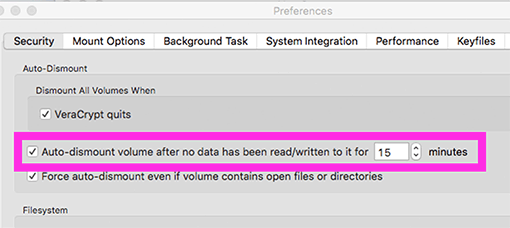 Achtung: Im Falle der Einstellungen oben ("Force auto-dismount …") gehen Änderungen an geöffneten Dateien verloren!