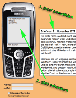 Eine nette und didaktisch gar nicht so dumme Idee: Einen beliebigen Brief aus "Die Leiden des jungen Werther" ins SMS-Format übersetzen. Erster Preis: ein Handy.