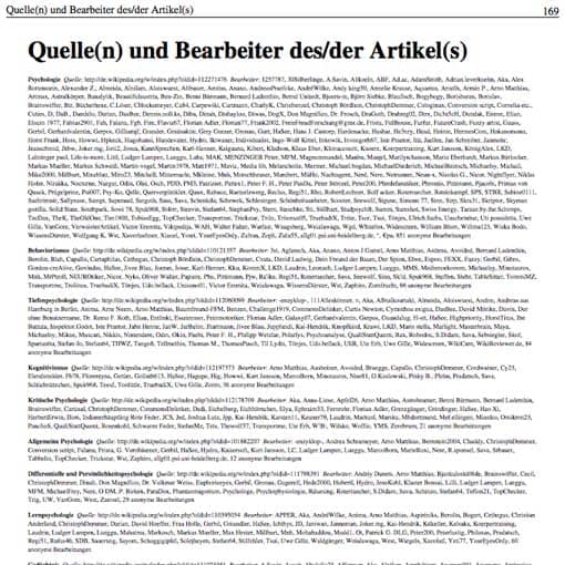 Wenn man in sein Buch (in welchem Format auch immer) hineinblättert, ist natürlich gemäß der Wikipedia-Mentalität am Ende auch ein überaus üppiges Verzeichnis der Quellen, Urheber und der Lizenzen zu finden: